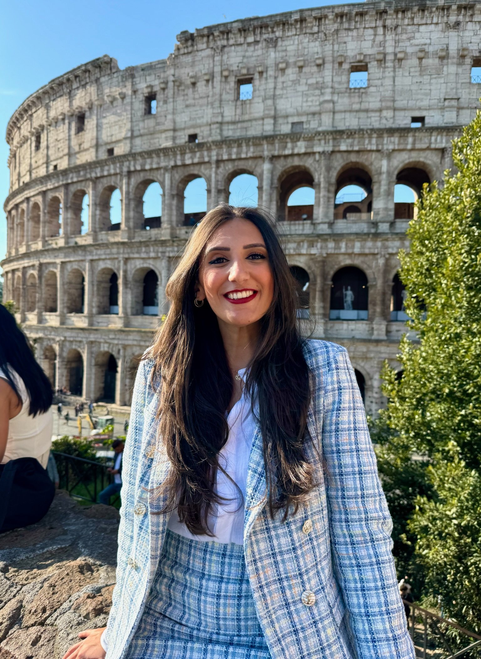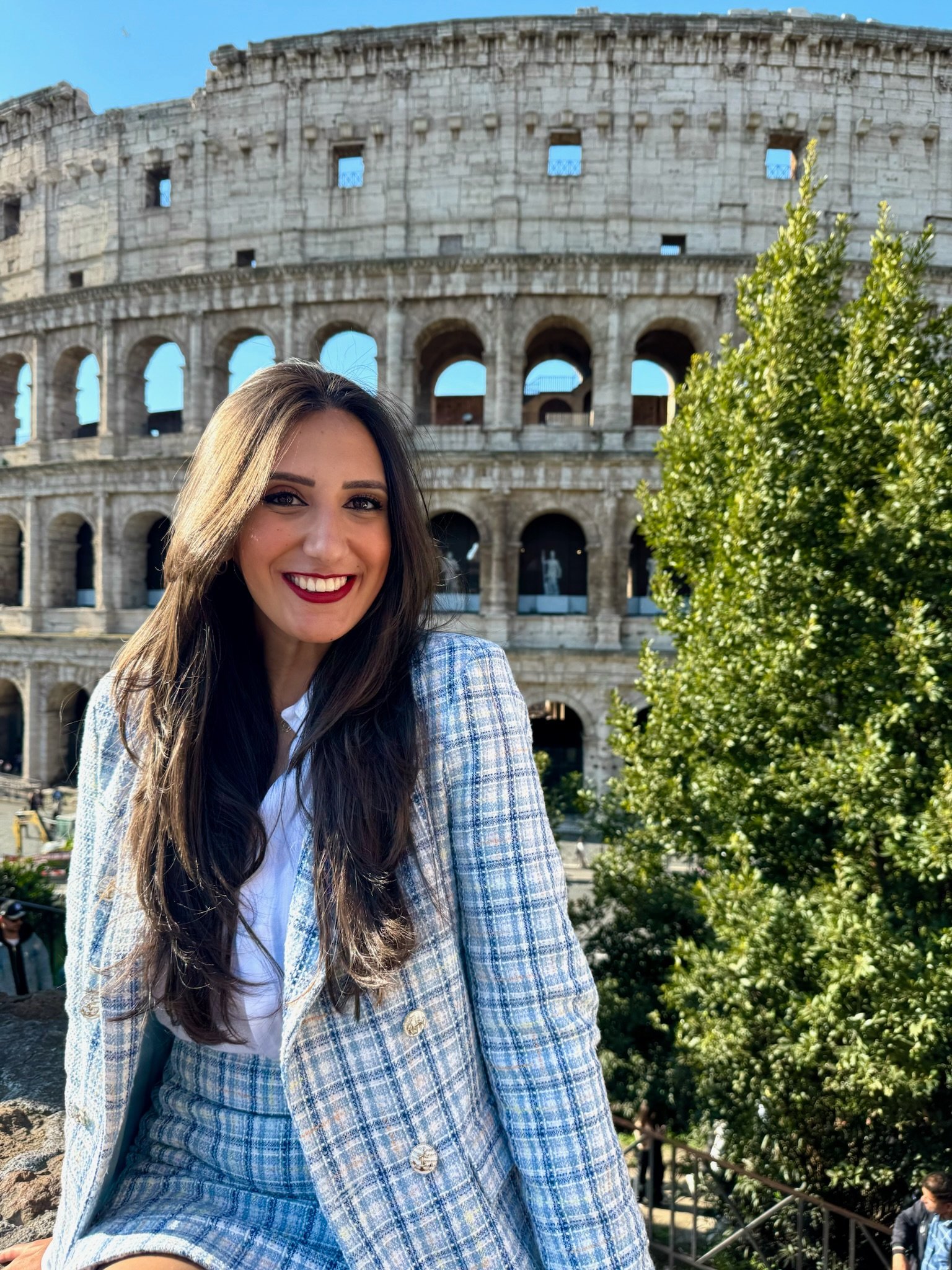 A saia apresenta modelagem reta, comprimento curto e estrutura firme, mantendo a proposta refinada do conjunto. O tweed confere textura ao visual e garante um acabamento clássico e atemporal.