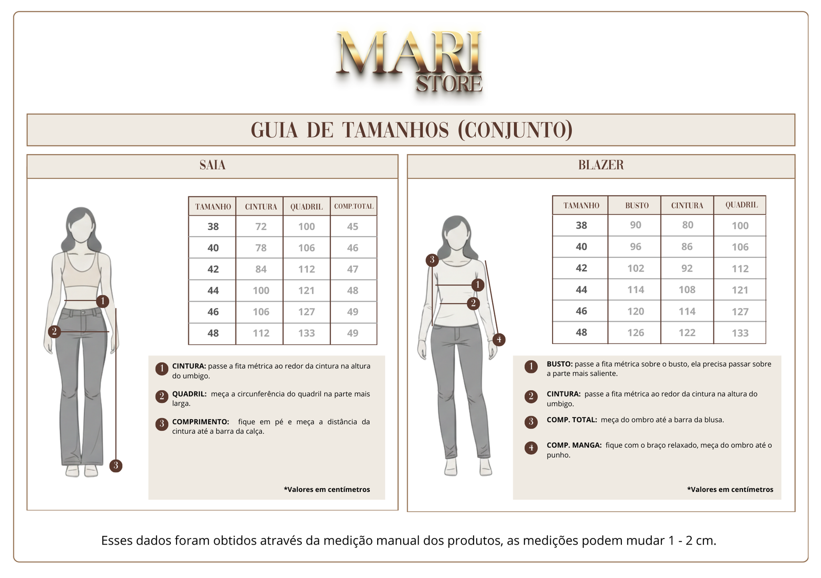 As peças podem ser utilizadas juntas como conjunto ou separadamente, permitindo diferentes composições conforme a ocasião.